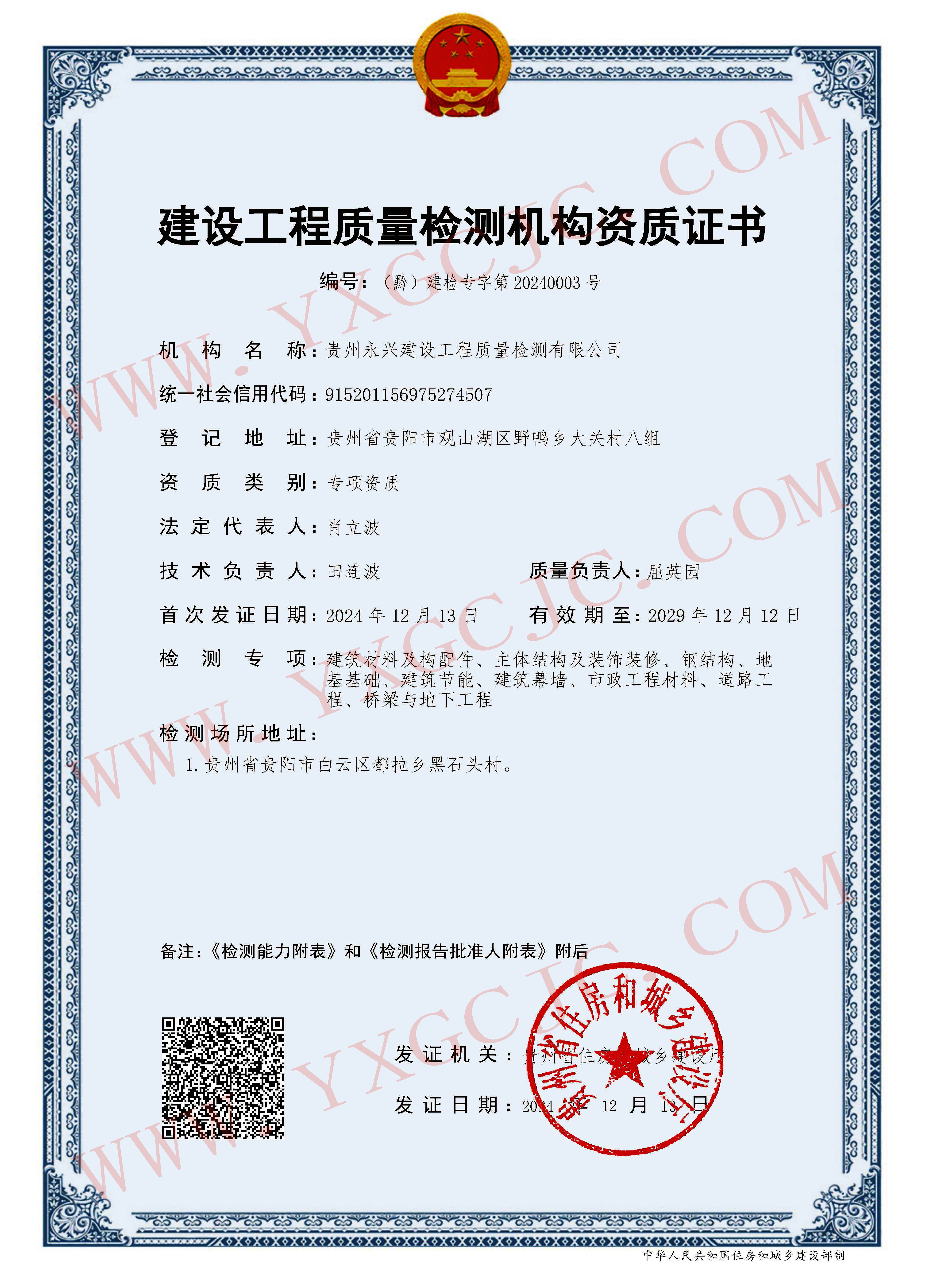云博在线客服成立于2009年12月21日,主要承接房建、市政、铁路、公路工程质量检测业务,并开展新技术、新材料、新工艺的研究开发与推广应用。公司取得的资质有:建设工程质量检测(见证取样、地基基础、主体结构、钢结构、门窗幕墙、室内环境)、公路工程试验检测、工程勘察、雷电防护装置检测。公司通过检验检测机构资质认定批准检测项目156项、检测参数1422个,公司还通过了质量管理、环境管理、职业健康安全管理体系认证。 ...更多>>