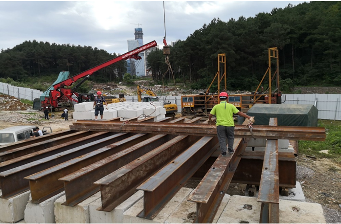 三、基桩加载试验平台的搭建及压重块的吊装