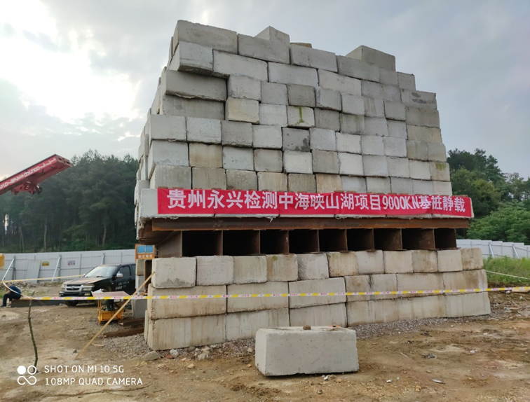 2020年6月7日,云博在线客服承接的贵阳中海映山湖项目9000kN基桩堆载试验平台于当日下午15点58分顺利搭建完成。本次基桩堆载试验钢平台采用9米跨度的主梁,自重约7.6吨,平台底部尺寸约8×8m,平台中心最高处压重块离地约8.5米。本次竖向抗压静载试验,用于检测单桩的竖向抗压承载力,为本工程设计提供参考依据。