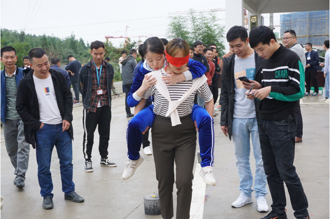 伴随着庄严肃穆的升旗仪式结束,文娱活动拉开帷幕,活动包括瞎子背瘸子、多人跳绳比赛、无敌风火轮、粉末登场、拔河比赛等项目。虽然天公不作美,但是并不影响队员们的发挥,活动过程充满一片欢声笑语,参赛队员们全神贯注、相互配合、默契十足,现场高潮迭起、气氛热烈。