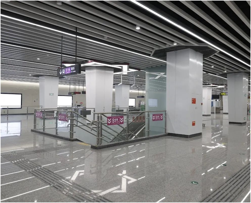 贵阳轨道交通S1线起于贵安新区皂角坝站,途经花溪区、经开区,止于南明区望城坡站。全长30.32公里,有22.64公里的地下线,7.68公里的高架及地面线,设车站13座。车辆为4动2拖6节编组的B型车,全线共配置20列电客车,座席308个,最大载客量可达2048人,最高运行速度为100km/h。列车客室内采用“2+2”横纵向混合布置座椅以及全新工业设计风格的“6对电动塞拉门”。